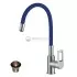 Смеситель Rossinka Z35-35U-Blue для кухонной мойки с гибким цветным изливом, хром/синий
